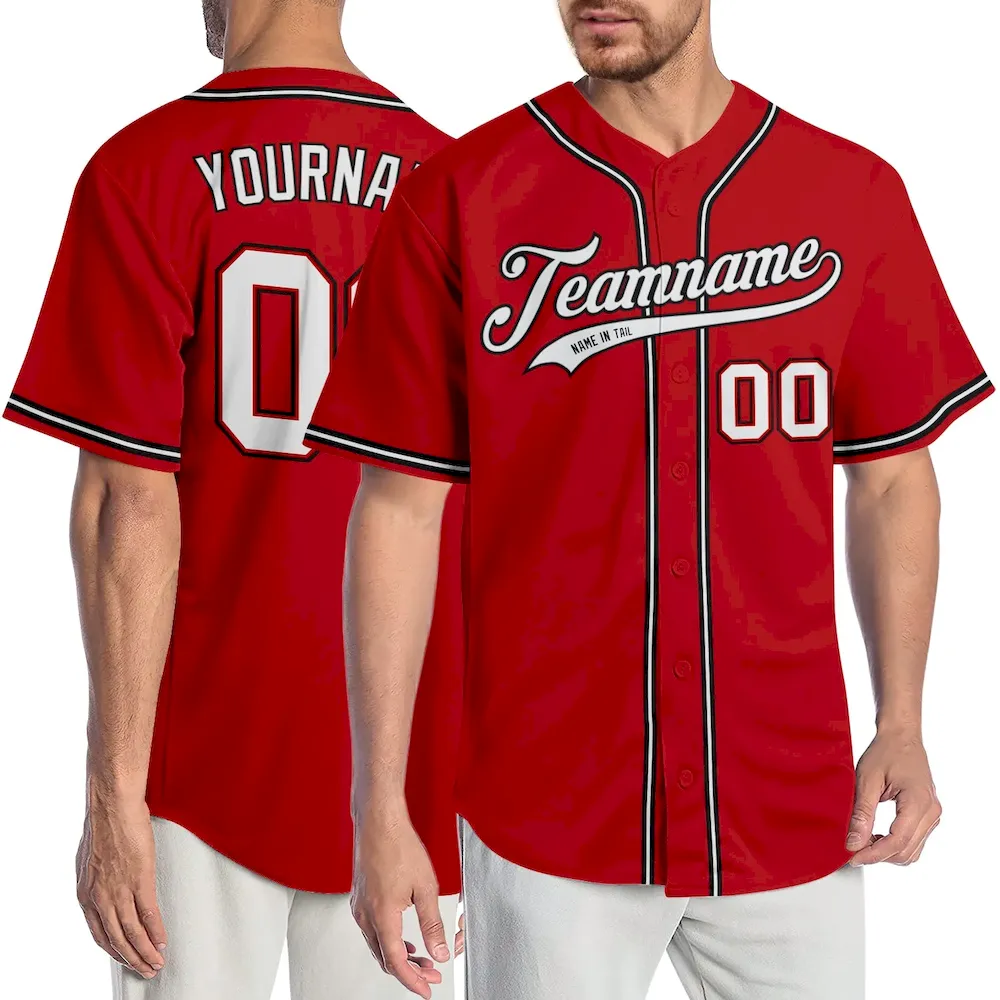 Custom Red White-Black Authentic Baseball Jersey