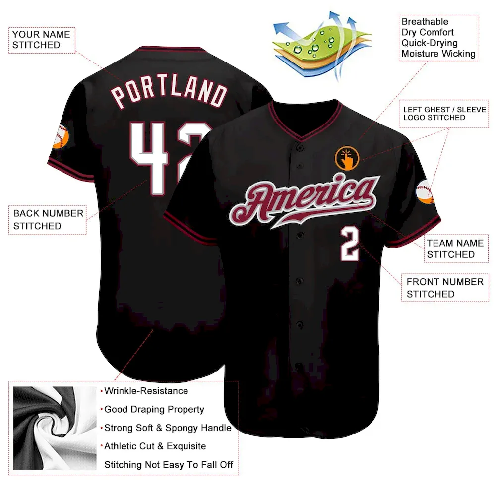 Custom Black White-Crimson Authentic Baseball Jersey