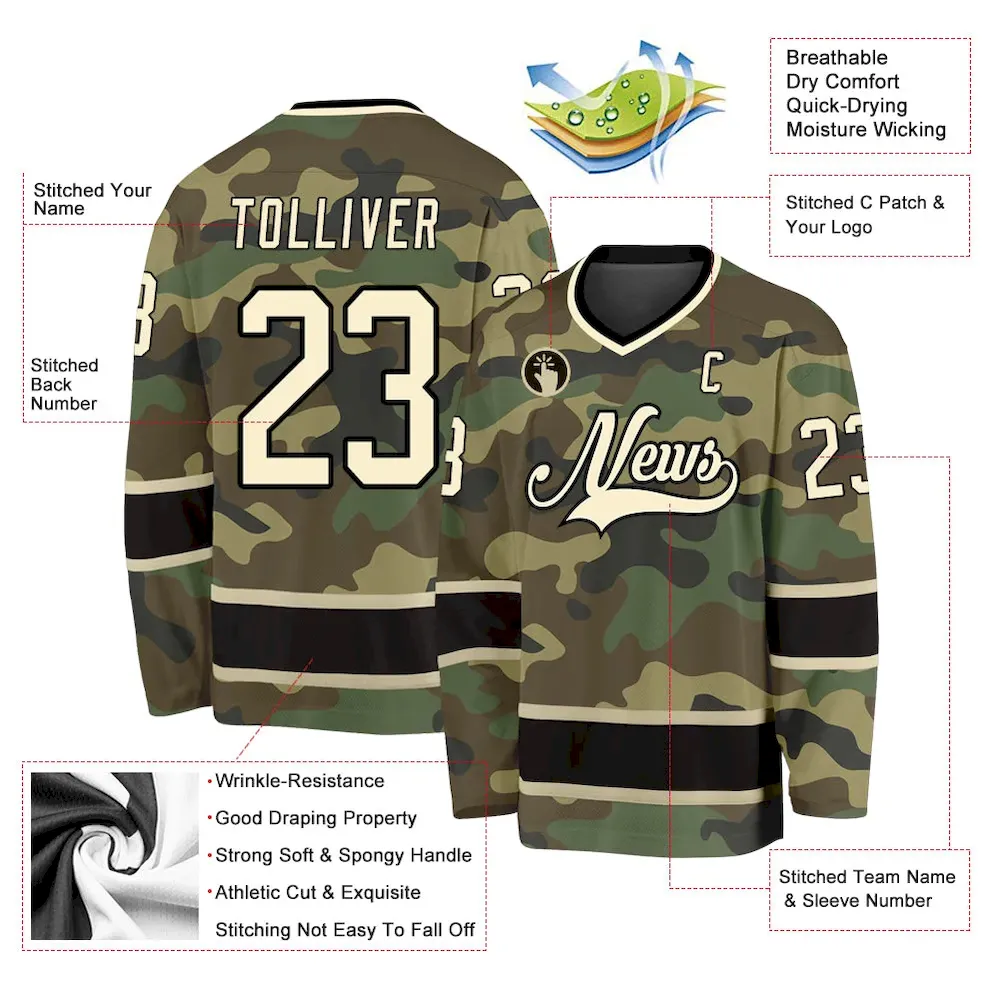 Custom Camo Cream-Black Salute To Service Hockey Jersey