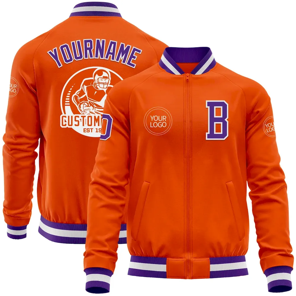 Custom Orange Purple-White Bomber Varsity Letterman Zipper Jacket