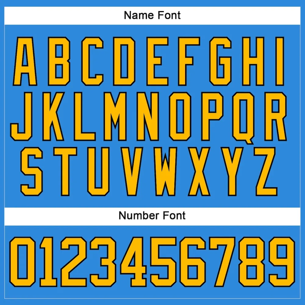 Custom Powder Blue Gold-Black Hockey Lace Neck Jersey