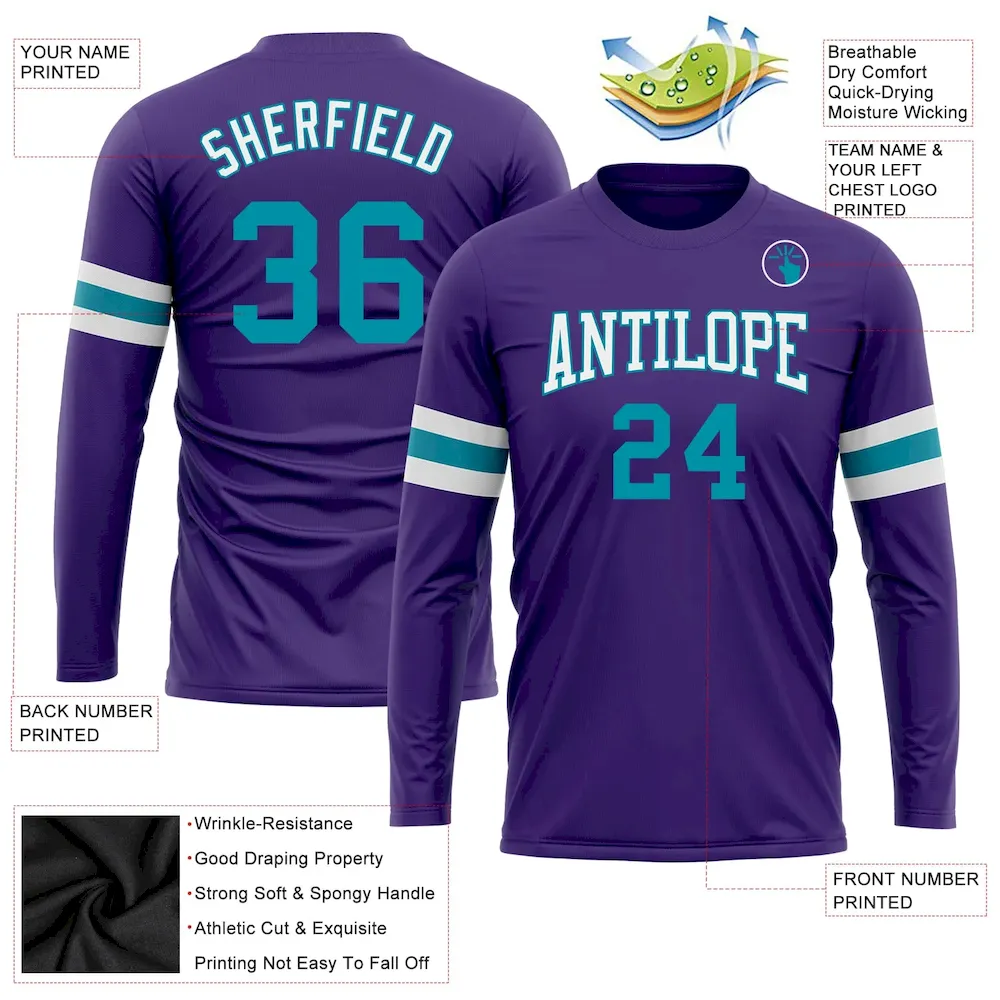Custom Purple Teal-White Long Sleeve Performance T-Shirt