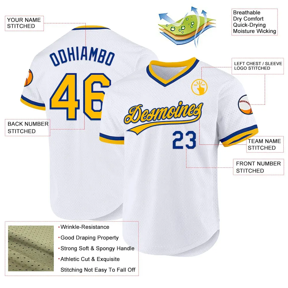 Custom White Gold-Royal Authentic Throwback Baseball Jersey